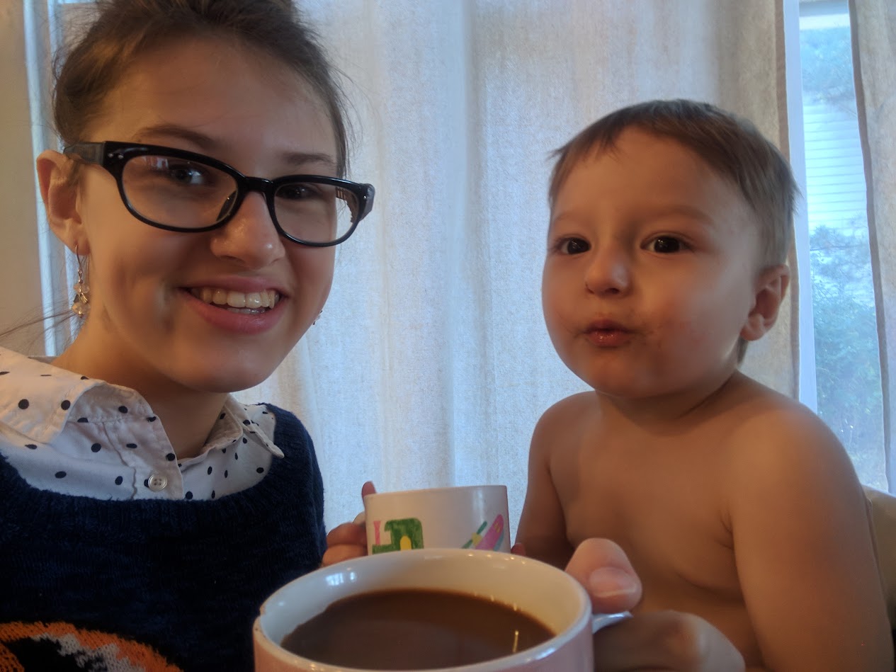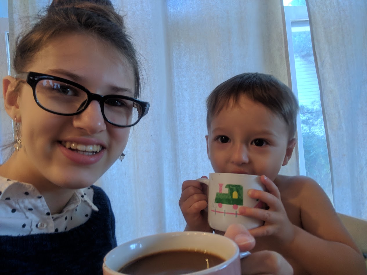 Rush has been enjoying coffee, as usual. 😉 When we tell people that he likes coffee - black - they usually say, "Well, who gave him coffee in the first place?" The answer is... me. I think I'm a wonderful big sister, exposing my little brother to some of the most wonderful things in life as soon as possible. 😉